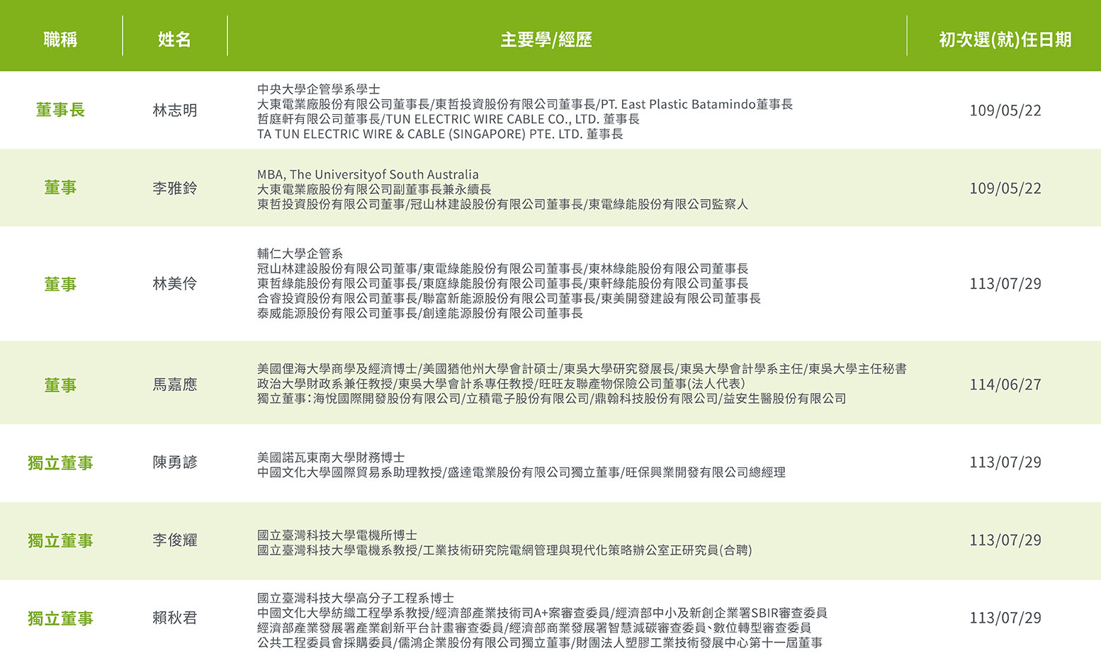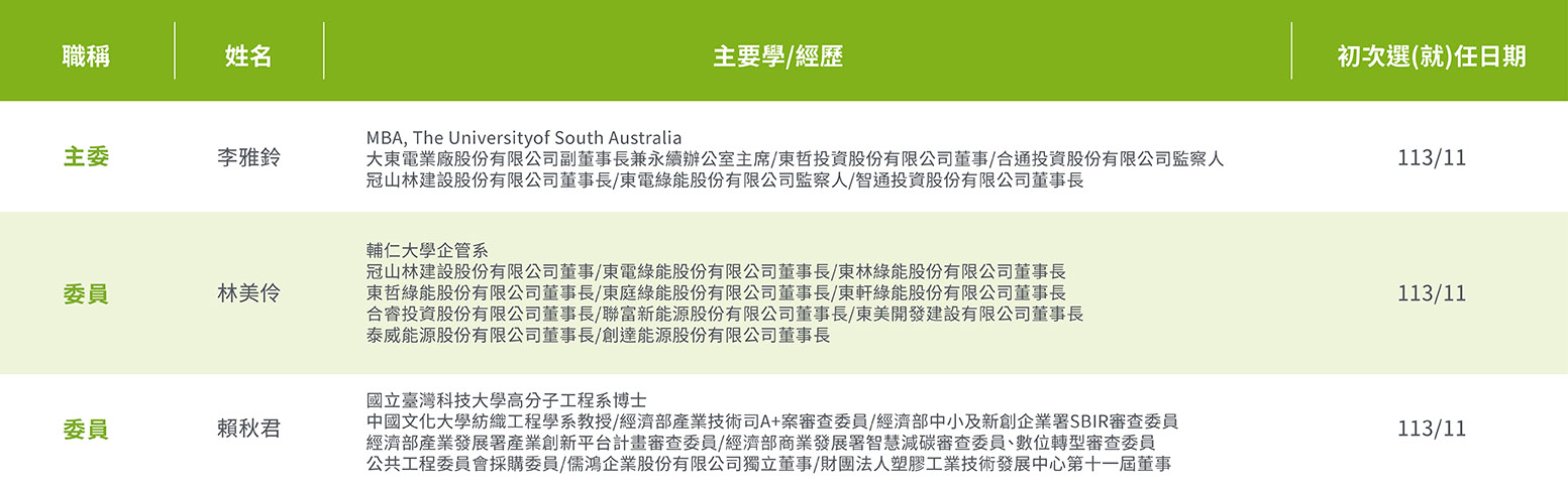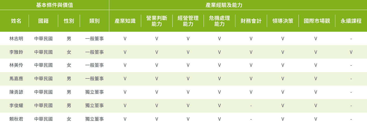 1.專業知識與技能:專業背景(如法律、財務、會計、產業、行銷及科技)、專業技能及產業經歷等
